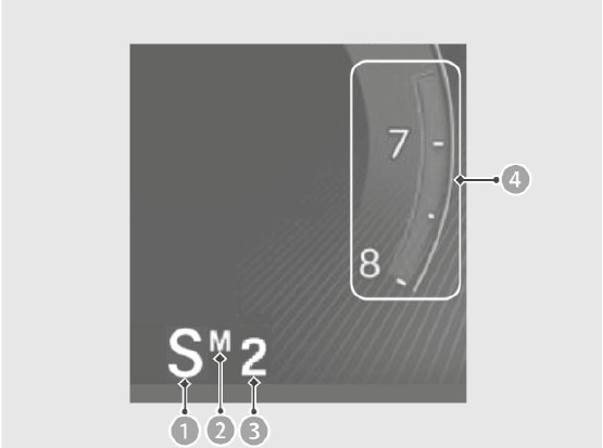 :O veículo irá temporariamente para o modo paddle shift de 7 velocidades e o número da marcha é exibido no indicador de posição de marcha.