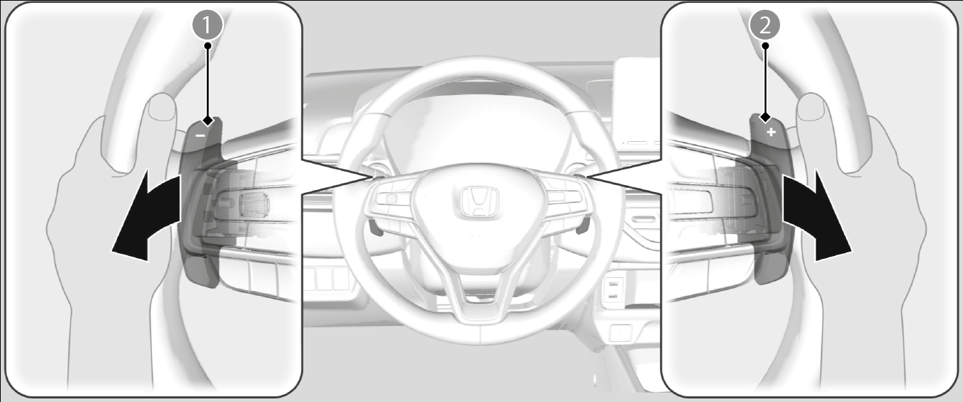 Use os paddle shifters para mudar entre a 1ª e a 7ª marchas. A transmissão muda para o modo paddle shift de 7 velocidades ao acionar o paddle shifter durante a condução do veículo. Esse modo é útil quando for necessário utilizar o freio-motor.
