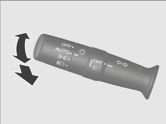 e, em seguida, gire para a posição AUTO, quando a alavanca estiver na posição de farol baixo.Usando o interruptor das luzes: