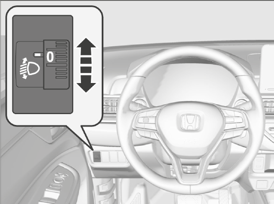 Gire o botão de ajuste para selecionar um ângulo adequado dos faróis baixos. O número maior do botão de ajuste indica um ângulo menor.