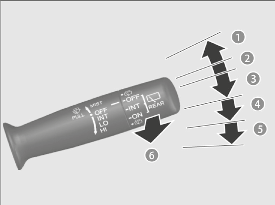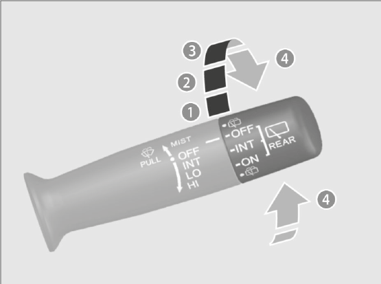 Ao liberar a alavanca, o esguicho do lavador para e o limpador traseiro retorna à configuração selecionada no interruptor, após alguns movimentos.