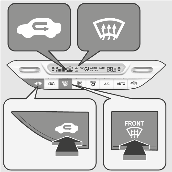 Para sua segurança, antes de dirigir certifique-se de ter uma visão clara em todos os vidros. Após desembaçar os vidros, mude para o modo de entrada de ar externo. Se o sistema for mantido no modo recirculação, os vidros podem embaçar devido a umidade. Isto impede a visibilidade. Não ajuste a temperatura perto do limite superior ou inferior. Quando o ar frio atingir o para-brisa, a parte externa do para-brisa poderá embaçar. O sistema consome muita energia, portanto, desligue-o quando o vidro estiver desembaçado. Isso poderá consumir muita carga da bateria, dificultando a partida do motor. |