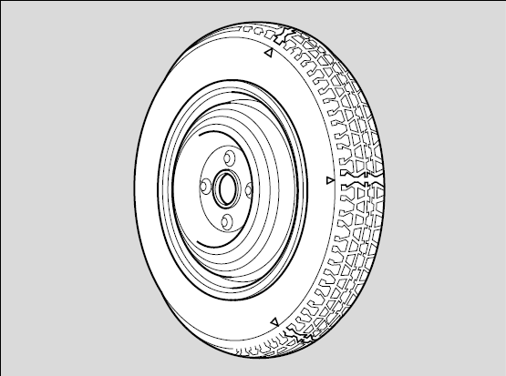 Substitua o pneu quando os indicadores de desgaste da banda de rodagem se tornarem visíveis. O pneu substituto deve ter o mesmo tamanho e desenho do pneu substituído, montado na mesma roda. O pneu do estepe temporário não foi projetado para ser montado numa roda normal, nem a roda do estepe temporário foi projetada para instalação de um pneu normal.