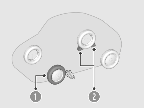[6] Coloque um calço na frente e atrás da roda diagonalmente oposta ao pneu furado.