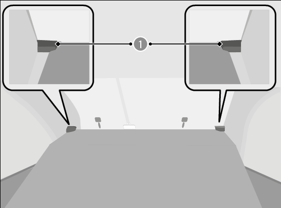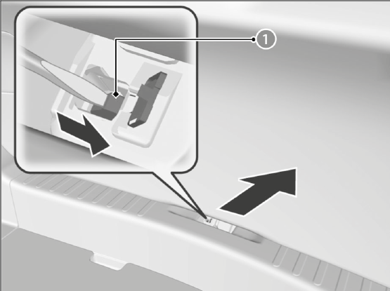 [1] Levante a cobertura do assoalho e desencaixe os suportes de fixação da cobertura do assoalho das fixações no assoalho do compartimento de bagagem.