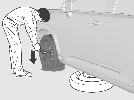 [8] Solte as porcas da roda em aproximadamente uma volta, usando a chave de roda.