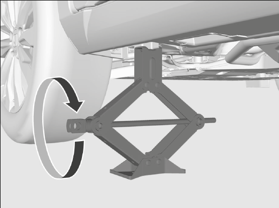 [2] Gire a extremidade do suporte do macaco no sentido horário, até a base superior do macaco encostar no encaixe da carroçaria.