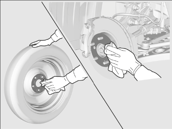 [2] Limpe as superfícies de instalação da roda com um pano limpo.