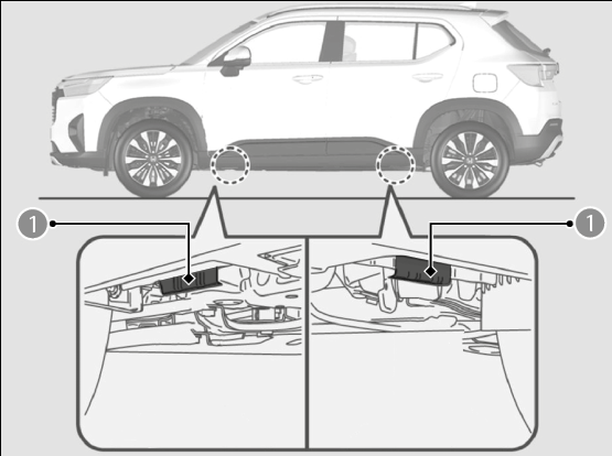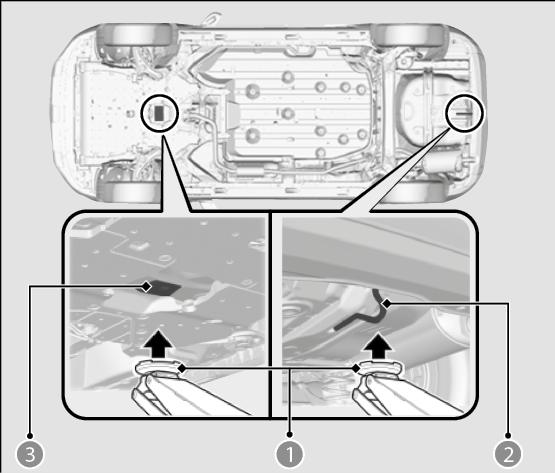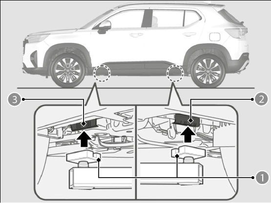 [1] Coloque o macaco sob o encaixe da carroçaria o mais próximo ao pneu a ser substituído.
