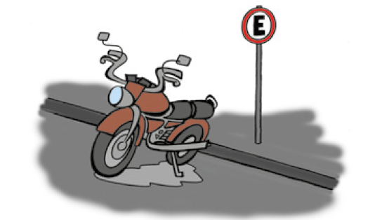 Motocicletas e outros veículos motorizados de duas rodas devem ser estacionados perpendicularmente à guia da calçada. A não ser que haja sinalização específica determinando outra coisa.