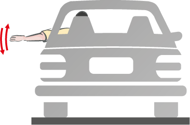 Braço estendido horizontalmente, agitando uma luz vermelha para um determinado veículo. |