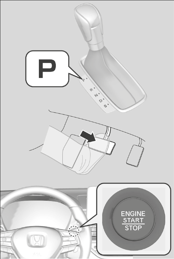 e, em seguida, pressione o botão ENGINE START/STOP.