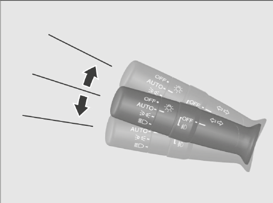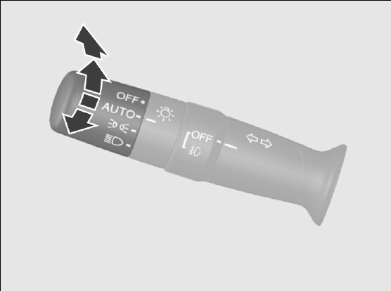 e, em seguida, gire para a posição AUTO, quando a alavanca estiver na posição de farol baixo.Usando o interruptor das luzes: