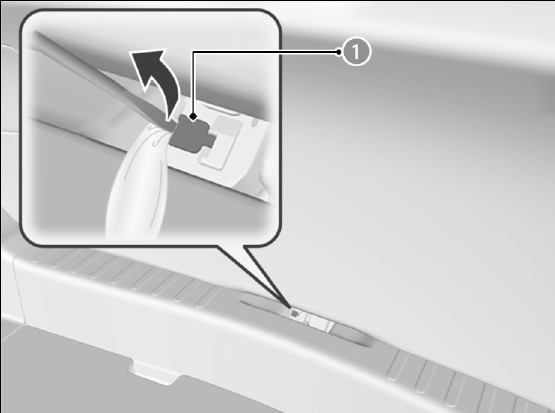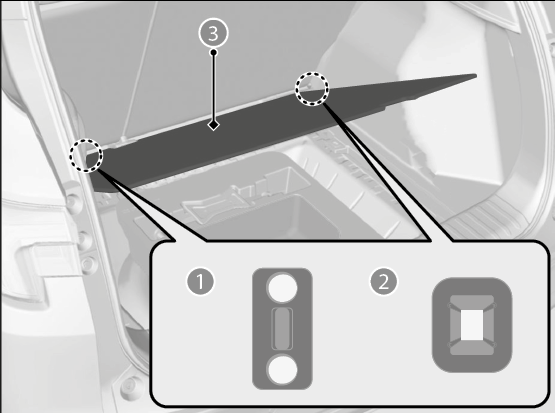 [1] Levante a cobertura do assoalho e desencaixe os suportes de fixação da cobertura do assoalho das fixações no assoalho do compartimento de bagagem.