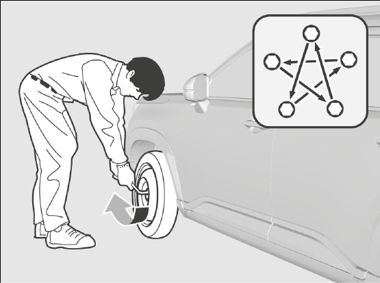 Aperte as porcas da roda na ordem indicada, conforme a figura.