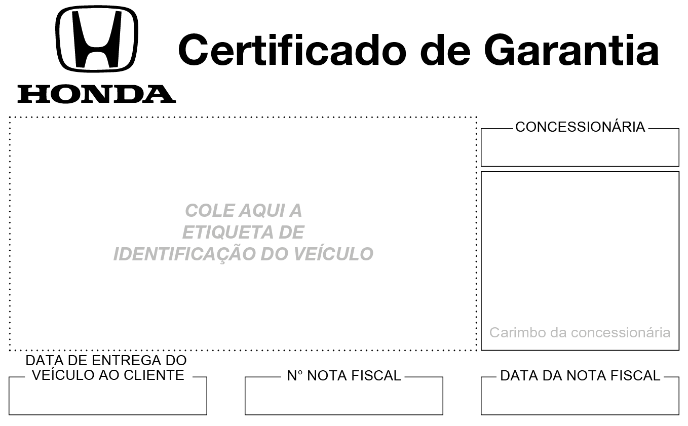 A Honda Automóveis do Brasil Ltda. garante este veículo, distribuído sob sua licença pelas Concessionárias Autorizadas Honda dentro do território nacional, de acordo com os termos aqui estabelecidos: