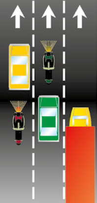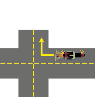 Mas às vezes é preciso deslocar-se lateralmente, para trocar de pista ou fazer uma conversão à direita ou à esquerda. Nesse caso, sinalize com bastante antecedência sua intenção. Para virar à direita, por exemplo, faça uso dos indicadores de direção e aproxime-se tanto quanto possível da margem direita da via enquanto reduz gradualmente sua velocidade.