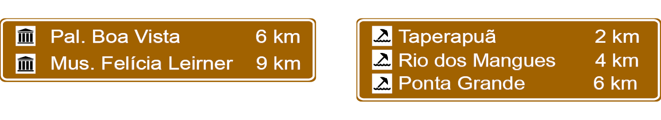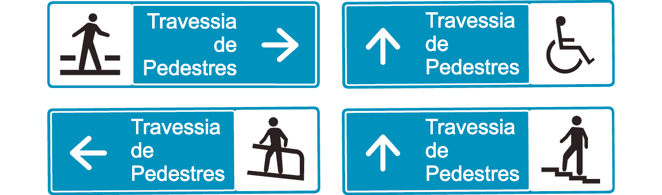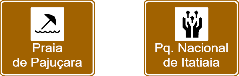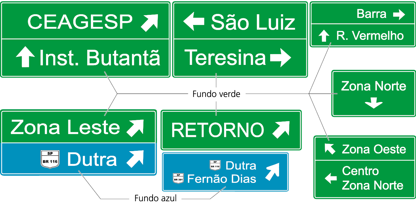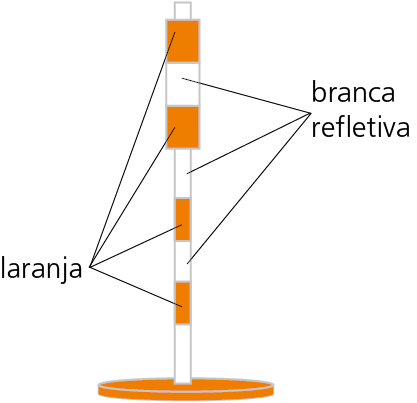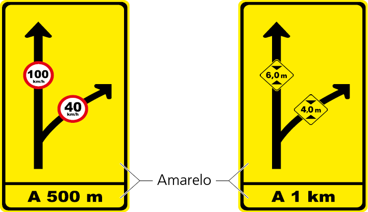 A sinalização vertical de advertência e as placas de orientação de destino adquirem características próprias de cor, sendo adotadas as combinações das cores laranja e preta. Entretanto, mantém as características de forma, dimensões, símbolos e padrões alfanuméricos: