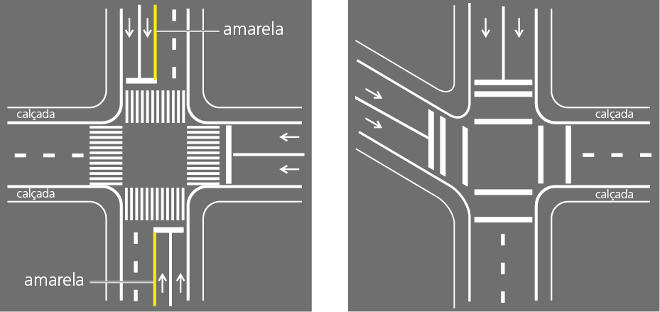 Para efeito de segurança recomenda-se o uso de, no mínimo, dois conjuntos de grupos focais por aproximação, ou a utilização de um conjunto de grupo focal composto de dois focos vermelhos, um amarelo e um verde.