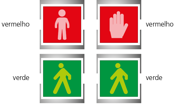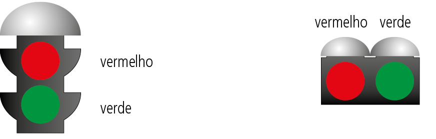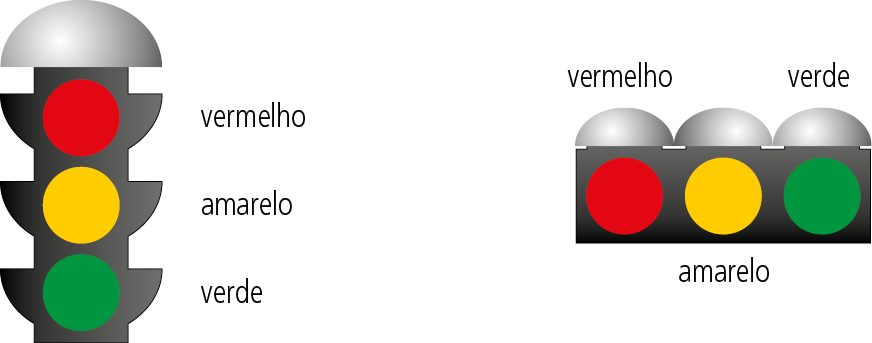 O acendimento das indicações luminosas deve ser na sequência verde, amarelo, vermelho, retornando ao verde.