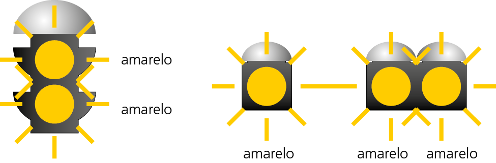 Compõe-se de uma ou duas luzes de cor amarela, cujo funcionamento é intermitente ou piscante alternado, no caso de duas indicações luminosas.