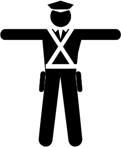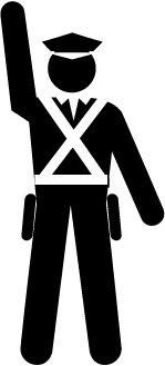 Ordem de parada obrigatória para todos os veículos que venham de direções que cortem ortogonalmente a direção indicada pelo braço estendido, qualquer que seja o sentido de seu deslocamento. |