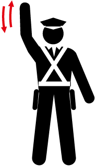 Braço estendido horizontalmente, agitando uma luz vermelha para um determinado veículo. |